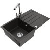 Mexen Bruno lava-loiça de granito com 1 bacia com escorredor e torneira de cozinha Duero, preto/prateado metálico