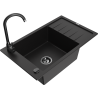 Mexen Elias lava-louça de granito 1-câmara com escorredor e torneira de cozinha Telma, preto/prateado - 6511-73-670200-70-B