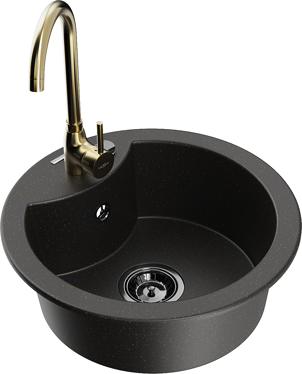 Mexen Diego lava-louça de granito com 1 cuba com torneira de cozinha Telma, preto/dourado - 6512-75-670200-50-B