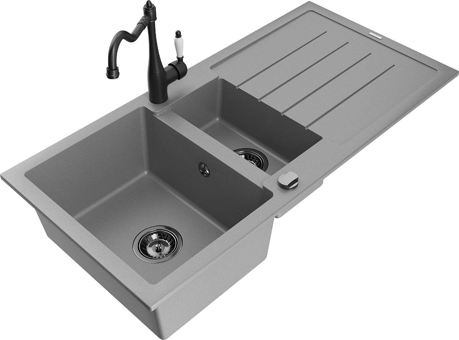 Mexen Andres lava-louça de granito com 1,5 bacias com escorredor e misturadora de cozinha Carla, cinza - 6515-71-670700-70-B