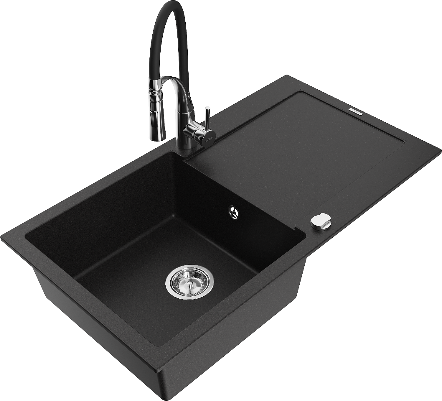 Mexen Leo lava-louça de granito com 1 cuba com escorredor e torneira de cozinha Aster, preto - 6501-77-73450-07