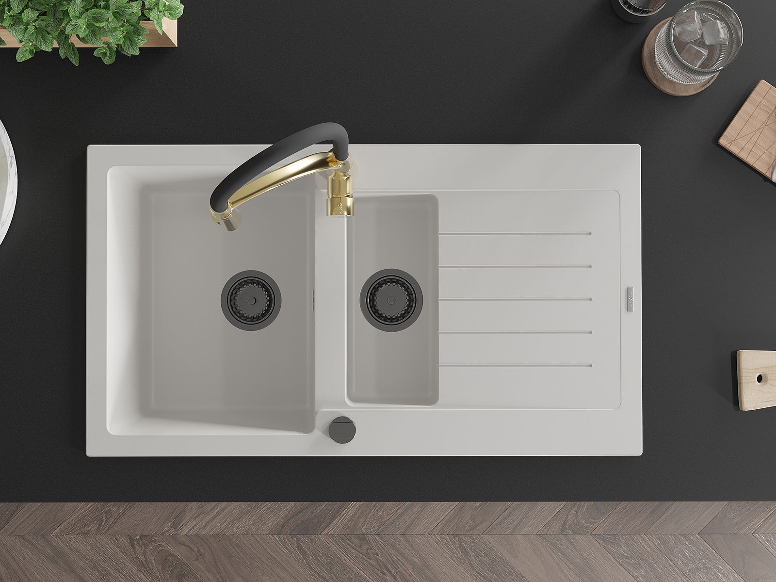 O lava-louças foi feito de granito de alta qualidade. É um complemento elegante e, acima de tudo, prático para qualquer cozinha, independentemente do seu estilo. A alta qualidade e durabilidade do granito garantem uma utilização de muitos anos.