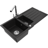 Mexen Andres lava-loiça de granito com 1,5 bacias com escorredor e torneira de cozinha Duero, preto salpicado