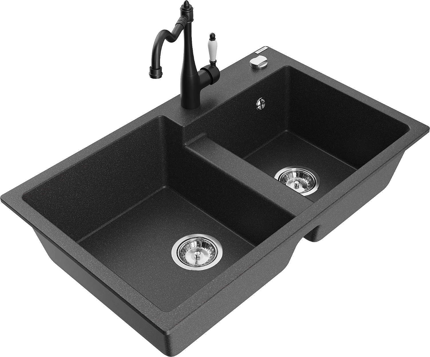 Mexen Tomas lava-louça de granito com 2 cubas e torneira de cozinha Carla, preto salpicado - 6516-76-670700-70
