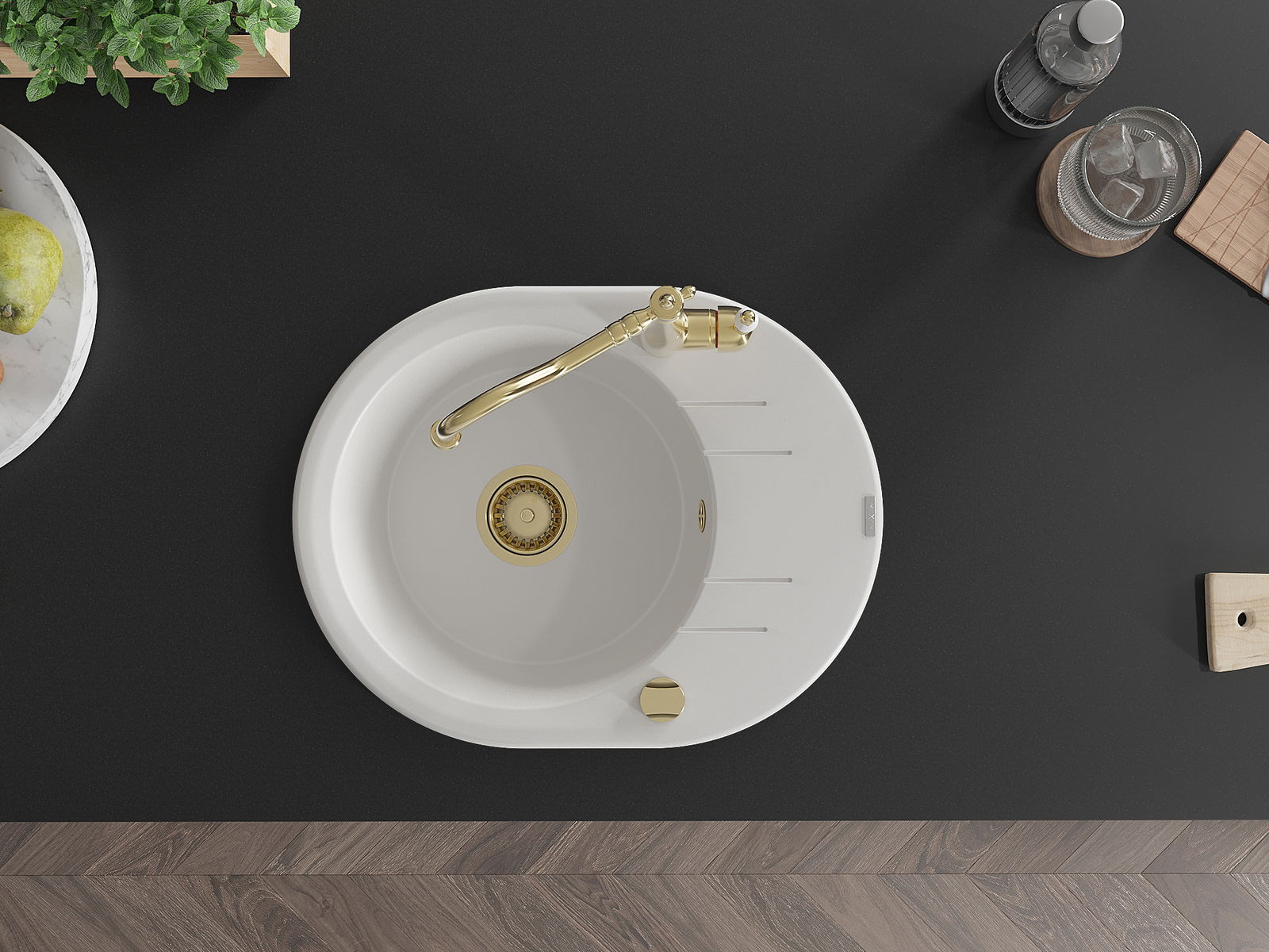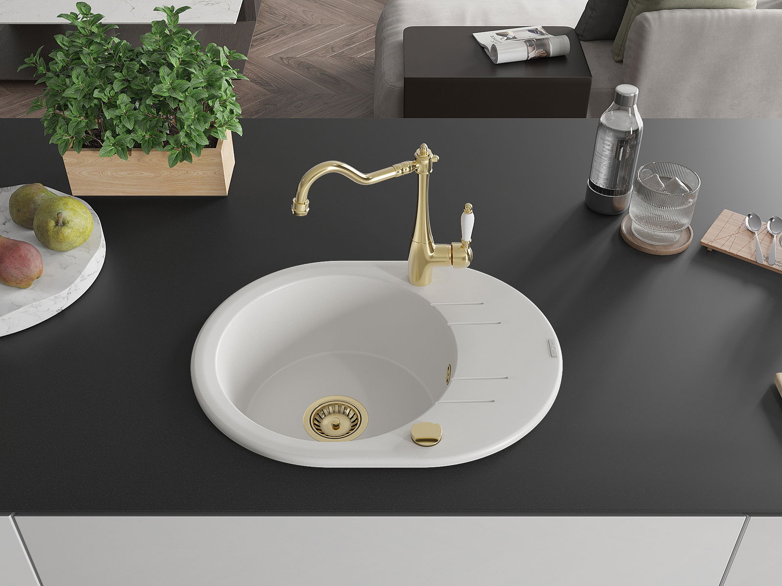 O lava-loiça é feito de granito de alta qualidade. Constitui um complemento elegante, e acima de tudo prático, para qualquer cozinha, independentemente do seu estilo. A alta qualidade e durabilidade do granito garantem muitos anos de utilização.