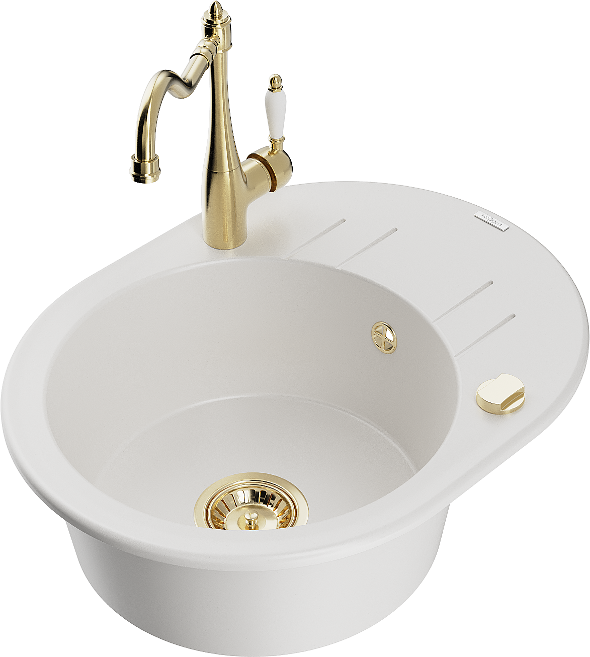 Mexen Kevin lava-loiça de granito de 1 cuba com escorredor e torneira de cozinha Carla, branco - 6517-20-670700-50