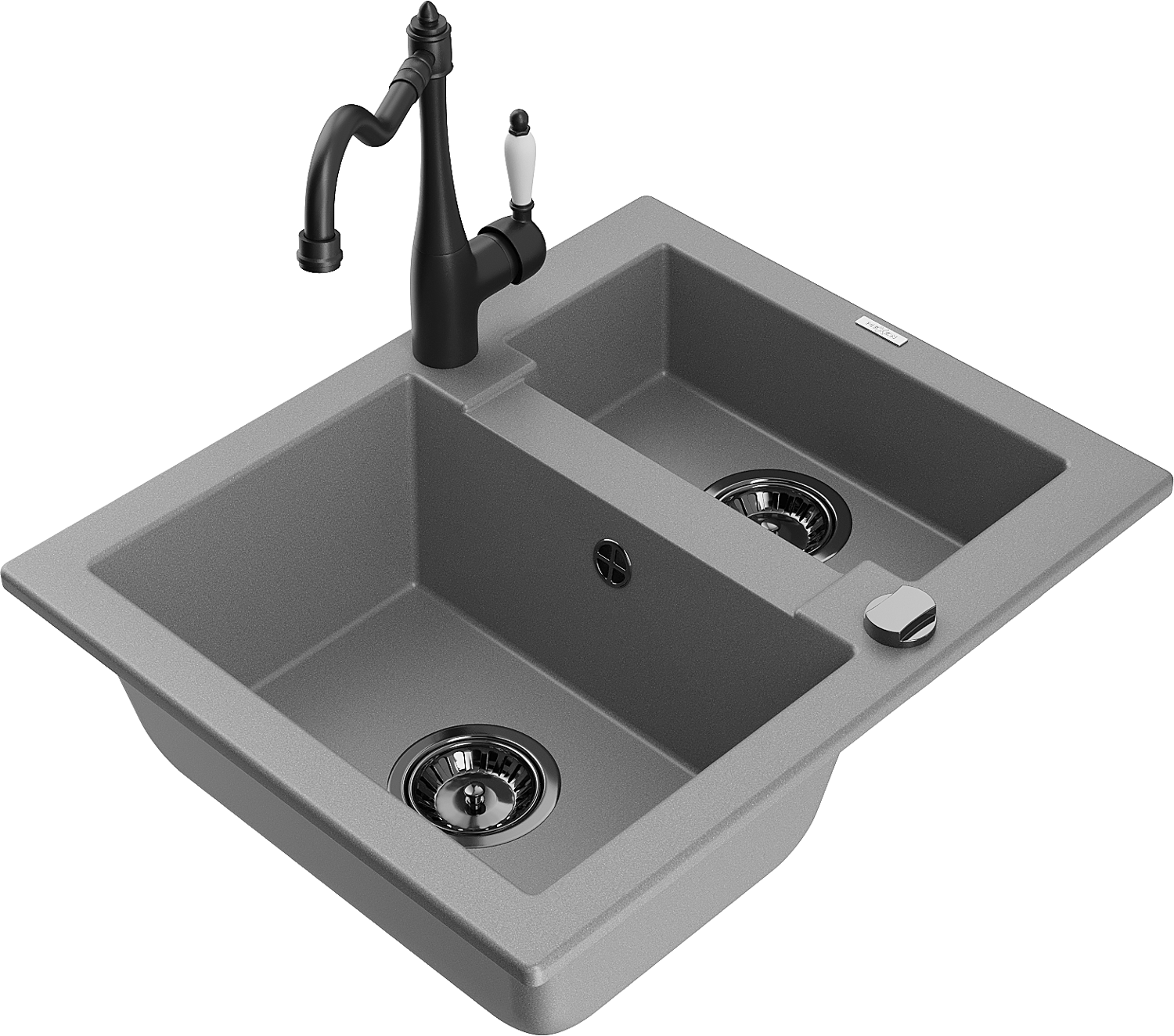 Mexen Carlos lava-louça granito 1,5-cubas com torneira de cozinha Carla, cinza - 6518-71-670700-70-B