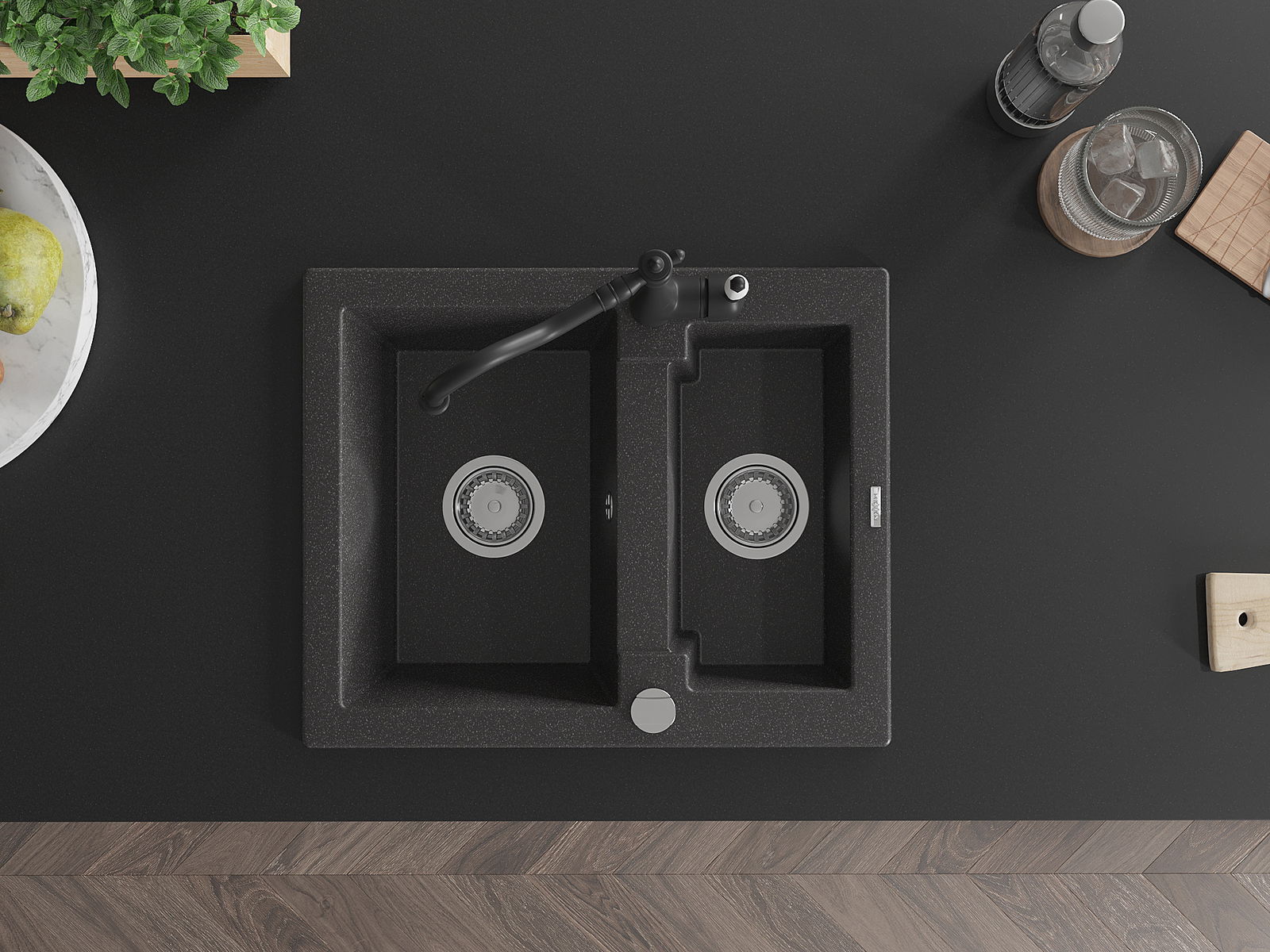 O lava-loiça é feito de granito de alta qualidade. Constitui um complemento elegante, e acima de tudo prático, para qualquer cozinha, independentemente do seu estilo. A alta qualidade e durabilidade do granito garantem muitos anos de utilização.