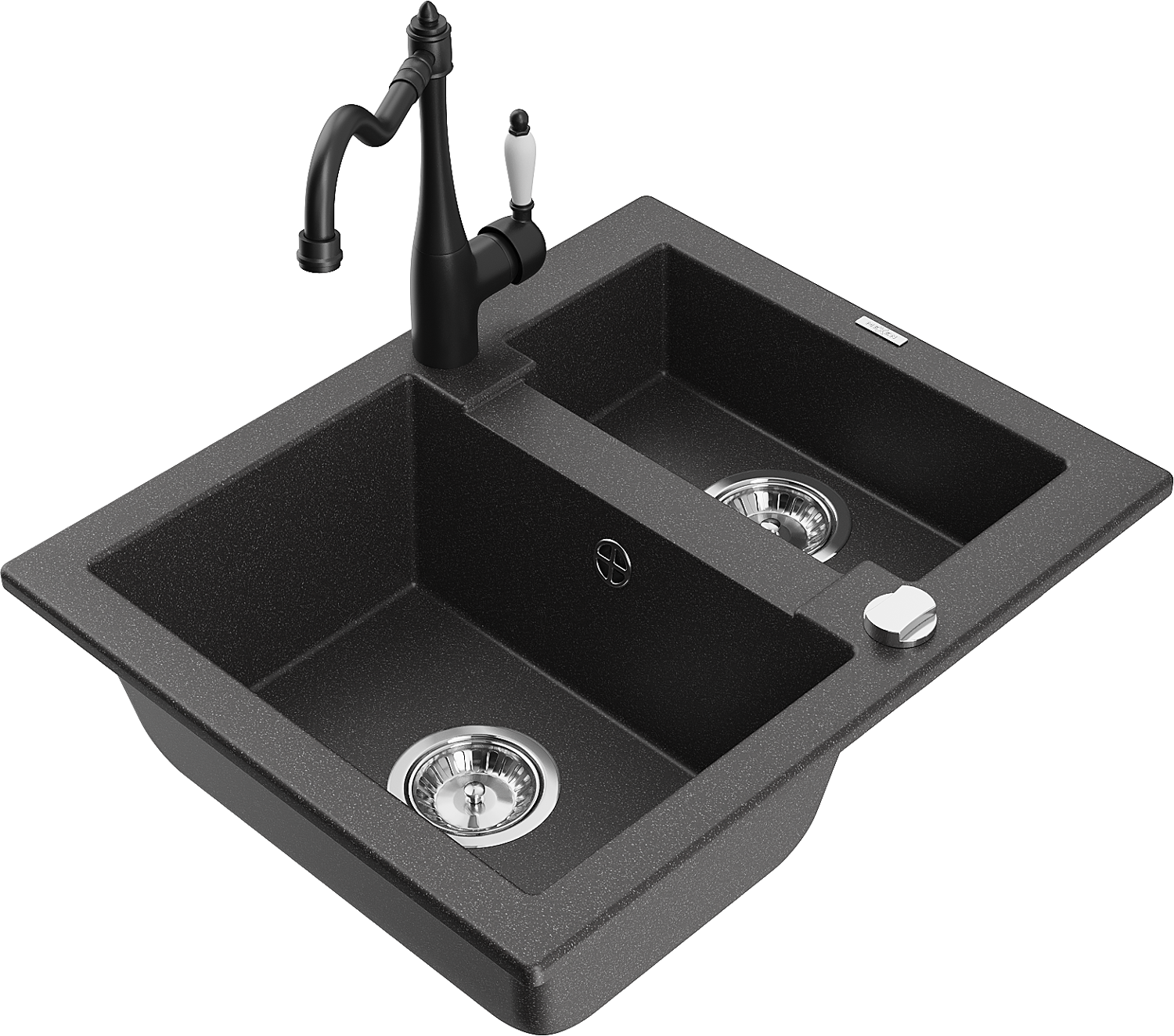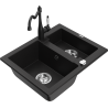 Mexen Carlos lava-louça de granito de 1,5 bacias com torneira de cozinha Carla, preto salpicado - 6518-76-670700-70