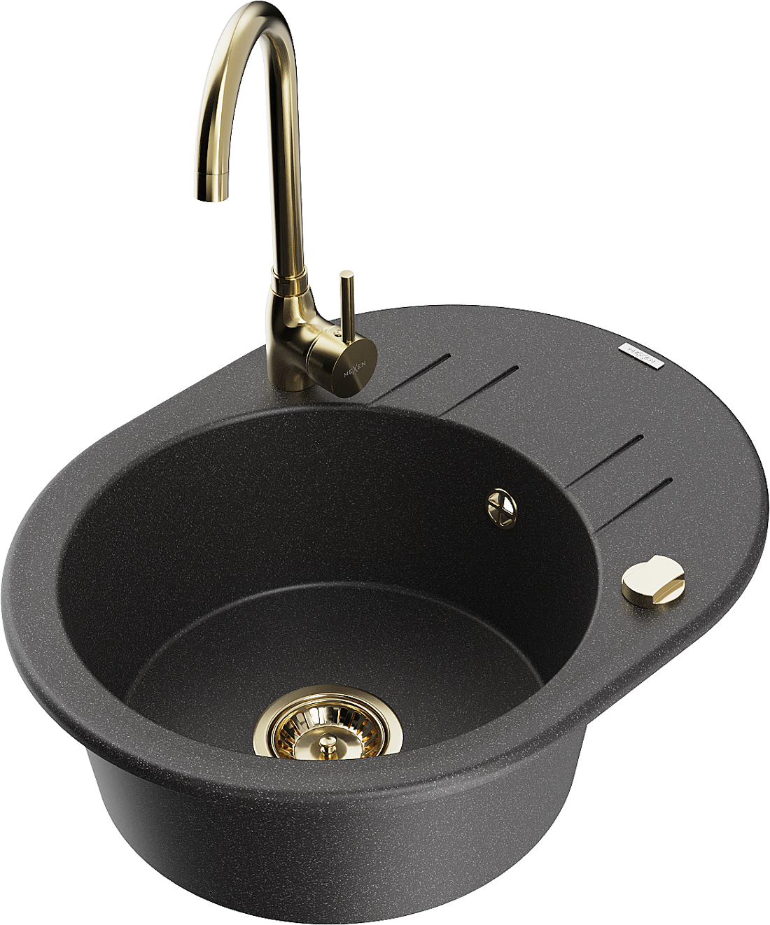 Mexen Kevin lava-louça de granito 1-com cavidade com escorredor e torneira Telma, preto salpicado - 6517-76-670200-50