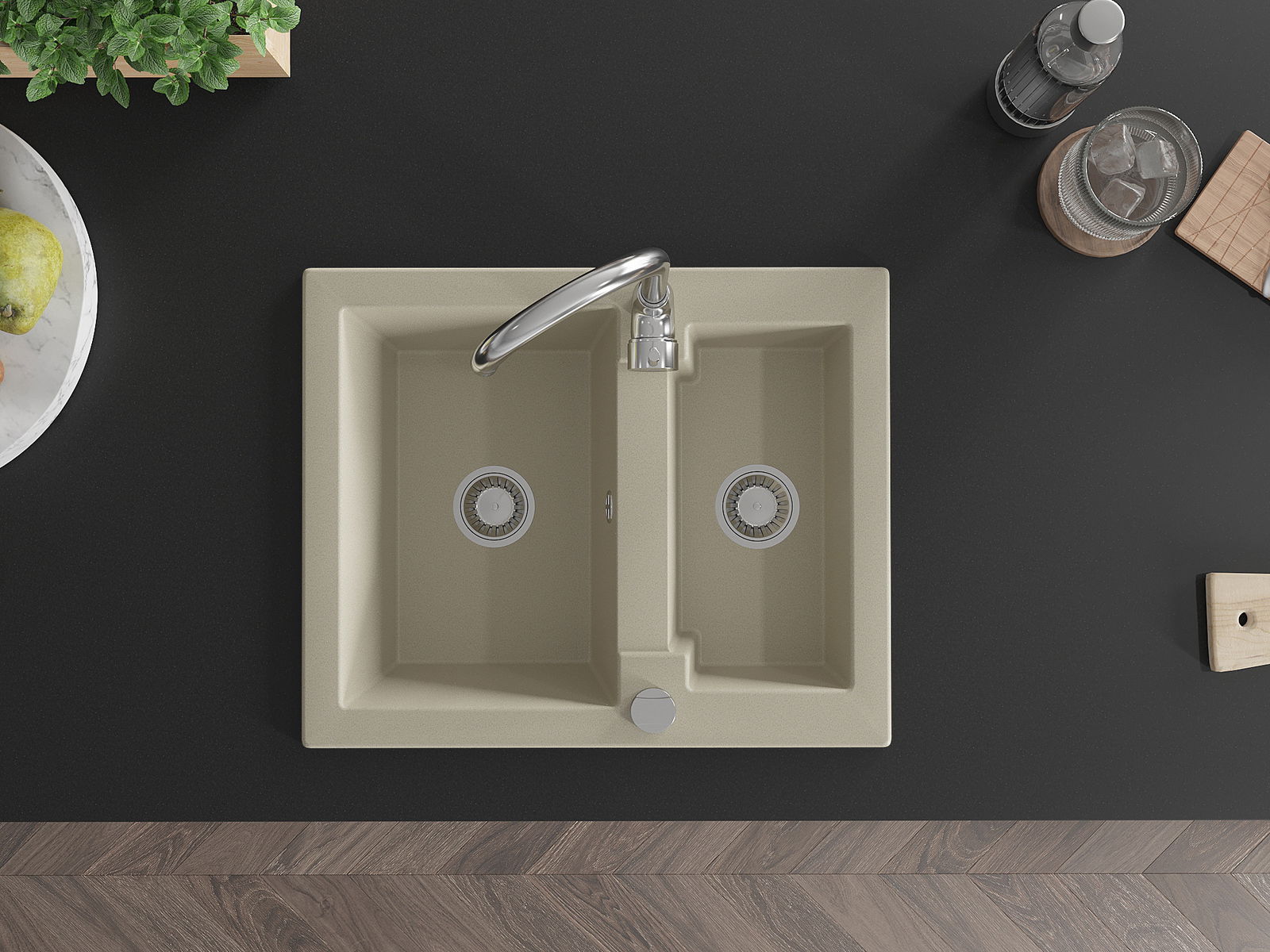 Mexen Carlos lava-louça em granito 1,5-cubas com torneira de cozinha Telma, bege - 6518-69-670200-00