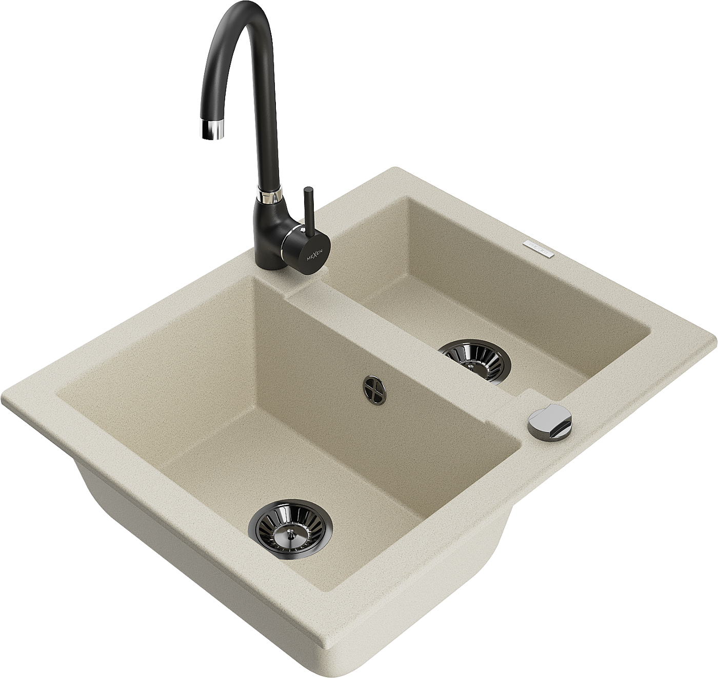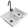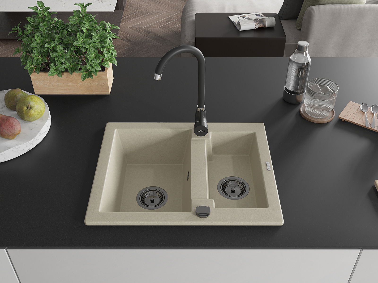 Mexen Carlos lava-loiça em granito de 1,5 cubas com torneira de cozinha Telma, bege - 6518-69-670200-70