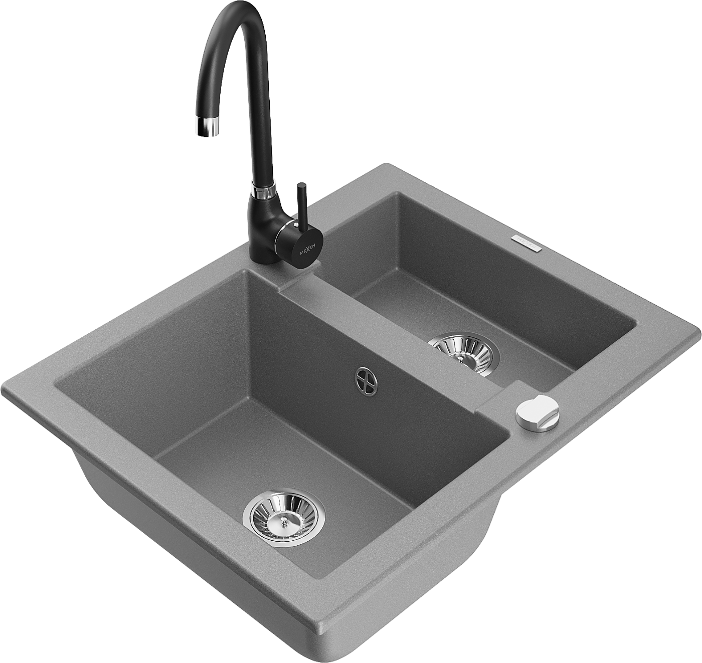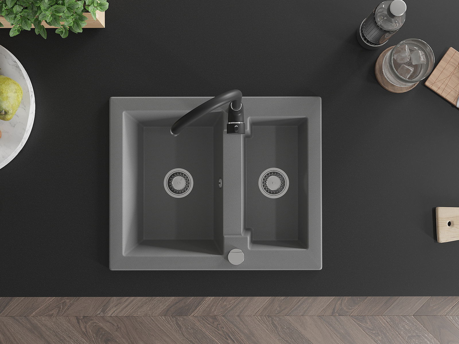 Mexen Carlos lava-louça de granito com 1,5 cubas e torneira de cozinha Telma, cinzento - 6518-71-670200-70