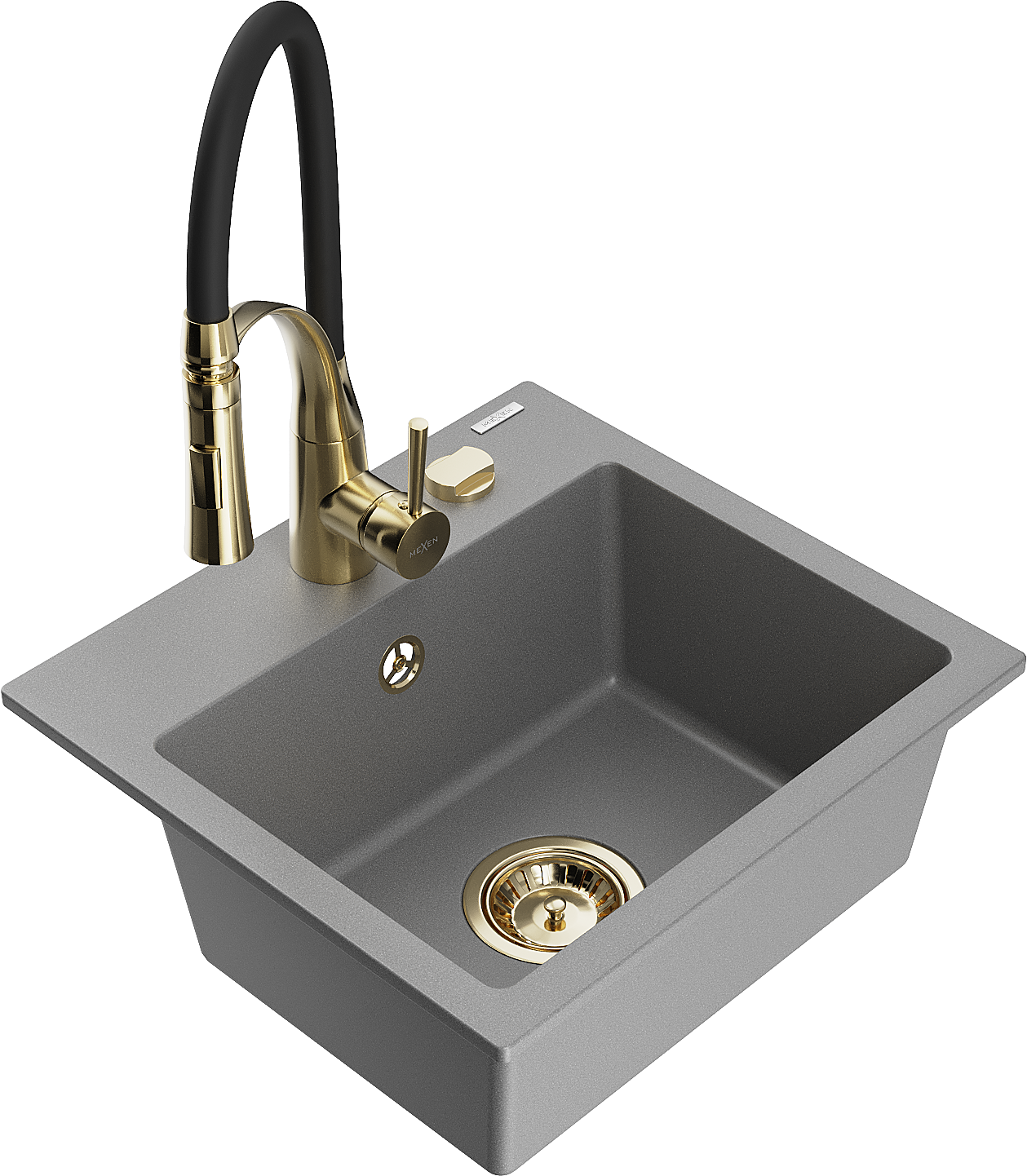 Mexen Milo lava-louça em granito de 1-cuba com misturadora de cozinha Aster, cinza - 6505-71-73450-57-G