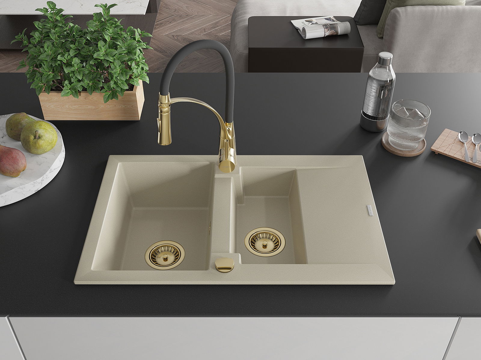 O lava-louças foi feito de granito de alta qualidade. É um complemento elegante e, acima de tudo, prático para qualquer cozinha, independentemente do seu estilo. A alta qualidade e durabilidade do granito garantem uma utilização de muitos anos.