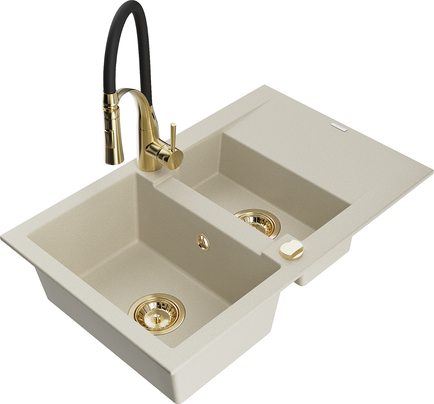 Mexen Gaspar lava-louça de granito de 1,5 cubas com escorredor e torneira de cozinha Aster, bege - 6507-69-73450-57-G