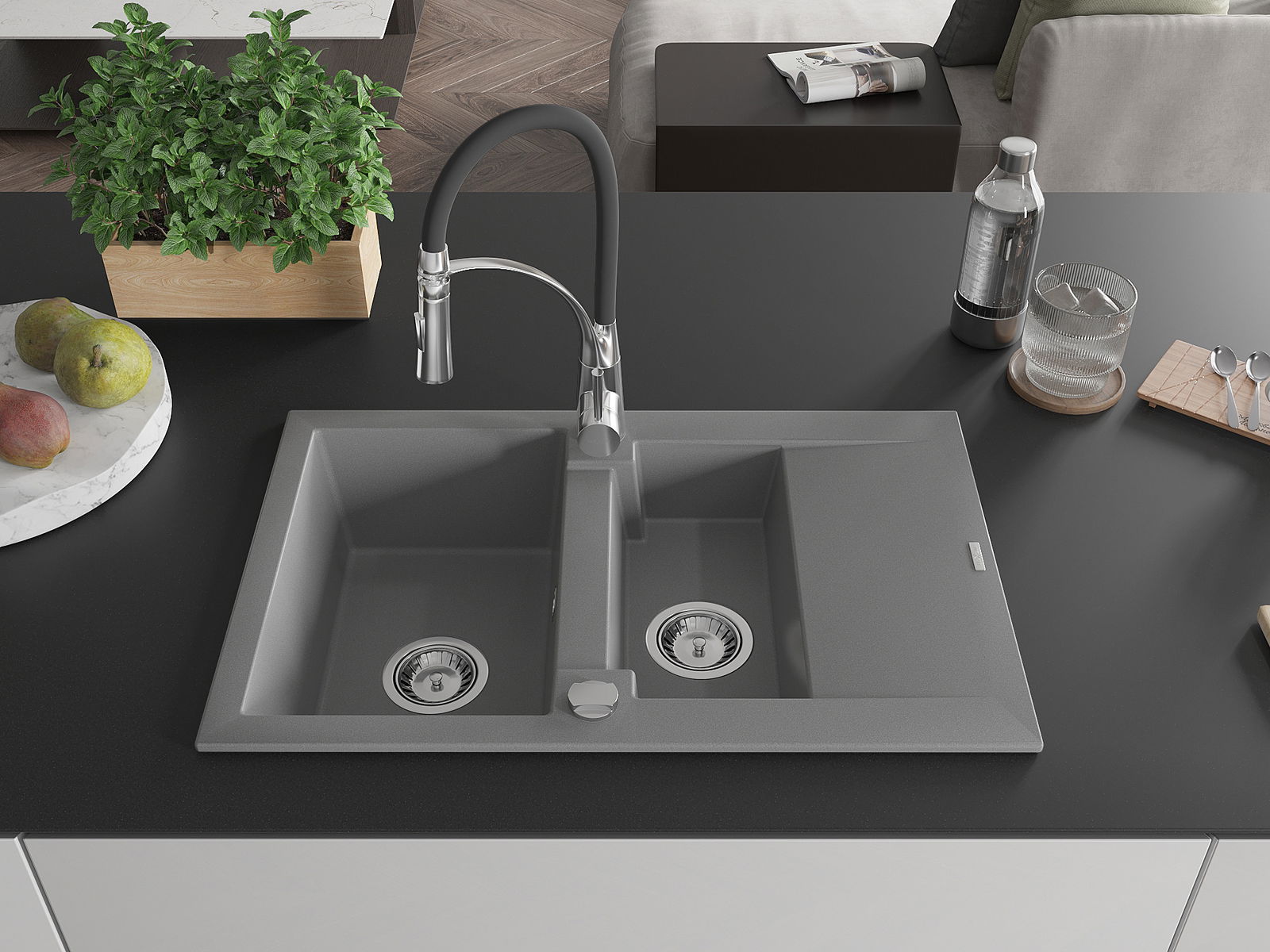 O lava-louças foi feito de granito de alta qualidade. É um complemento elegante e, acima de tudo, prático para qualquer cozinha, independentemente do seu estilo. A alta qualidade e durabilidade do granito garantem uma utilização de muitos anos.