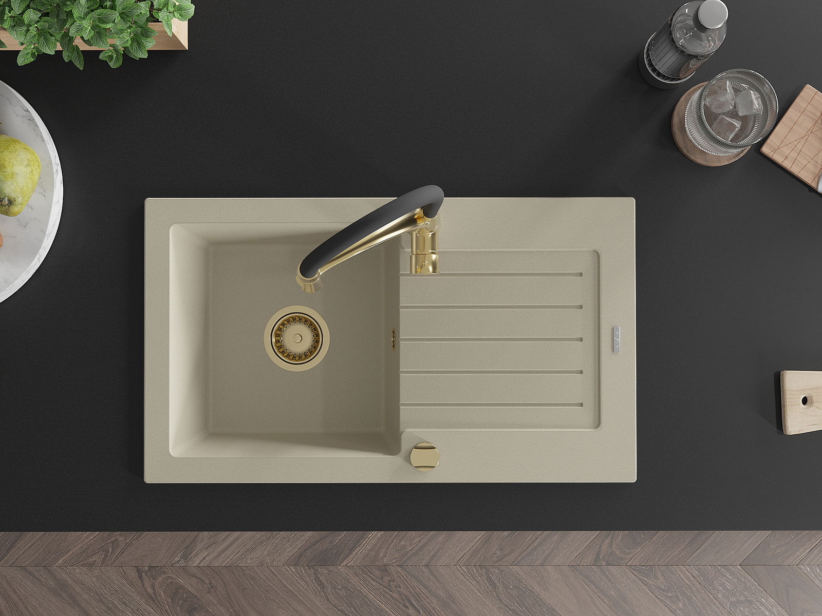 Mexen Pablo lava-loiça de granito 1-cuba com escorredor e misturadora de cozinha Aster, bege - 6510-69-73450-57-G