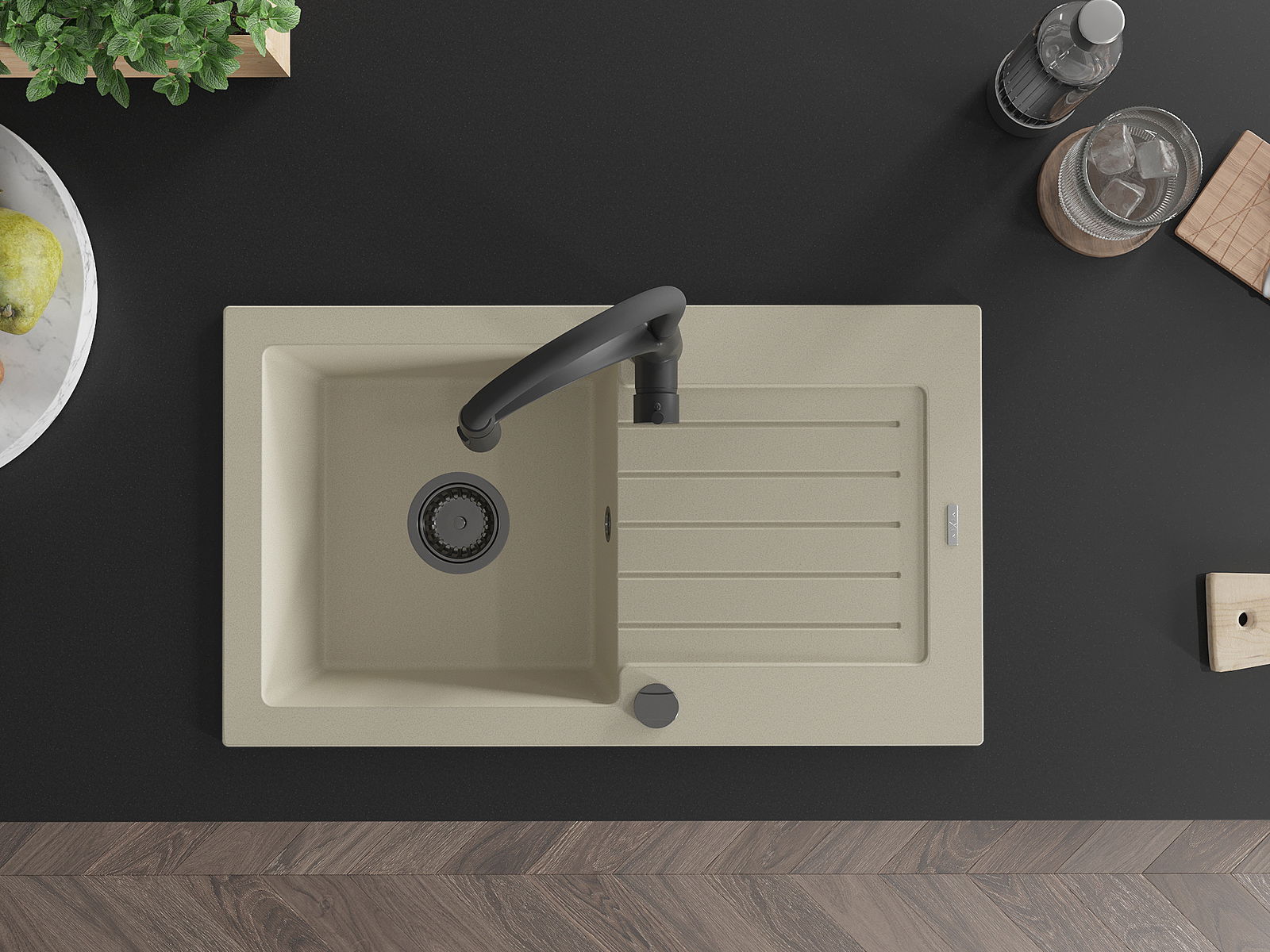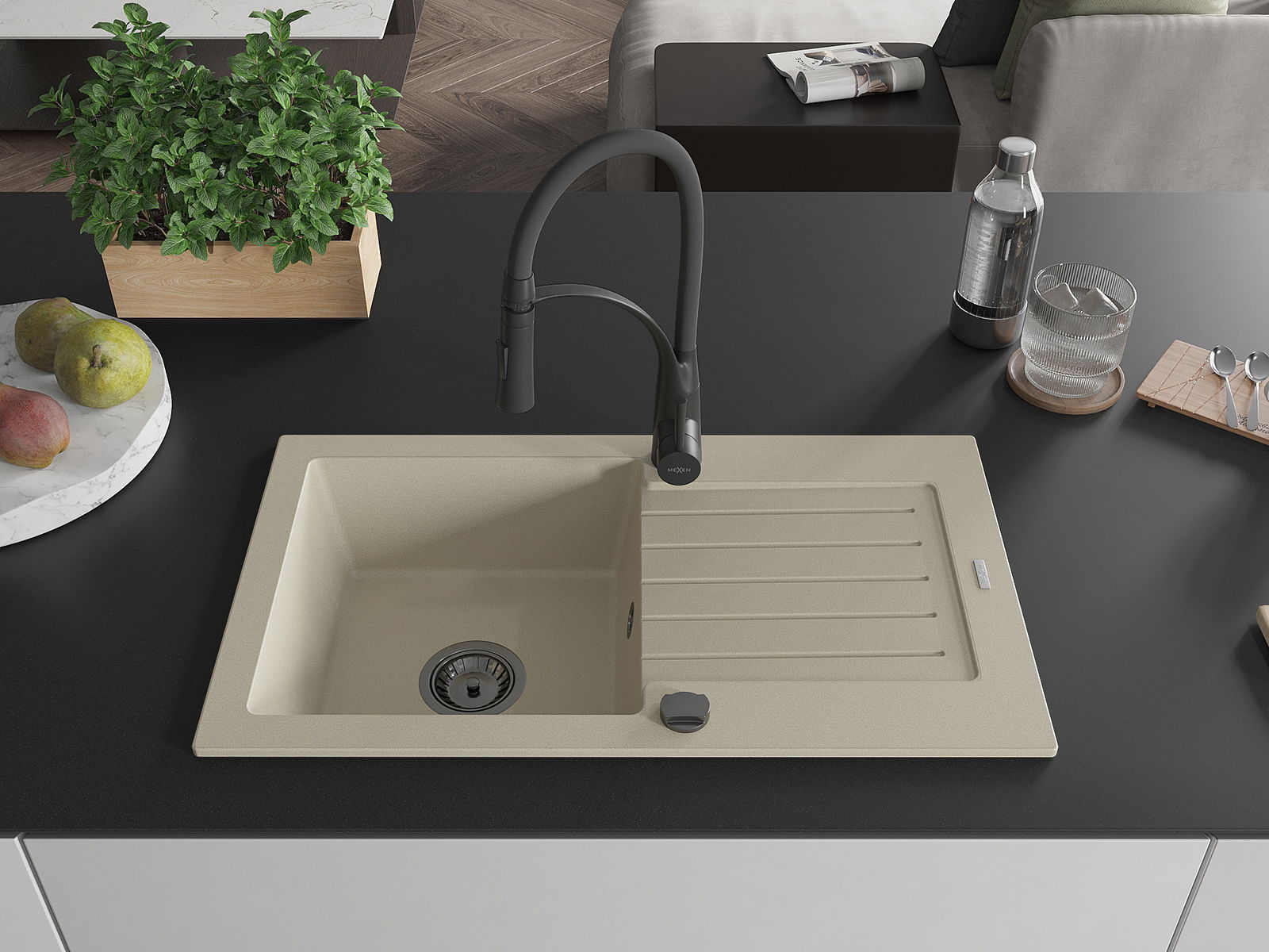 Mexen Pablo lava-louça de granito de uma bacia com escorredor e torneira de cozinha Aster, bege - 6510-69-73450-70-B