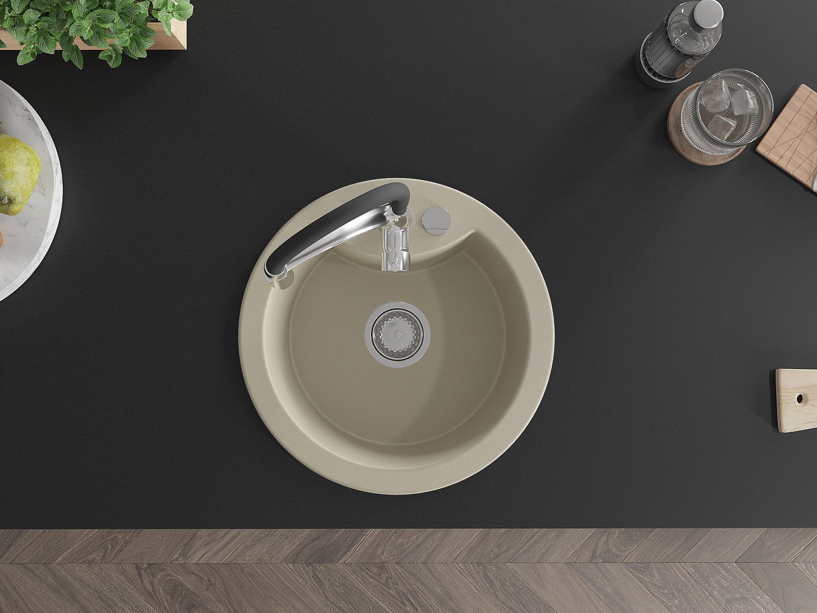Mexen Diego lava-loiça de granito de 1 compartimento com torneira de cozinha Aster, bege - 6512-69-73450-07