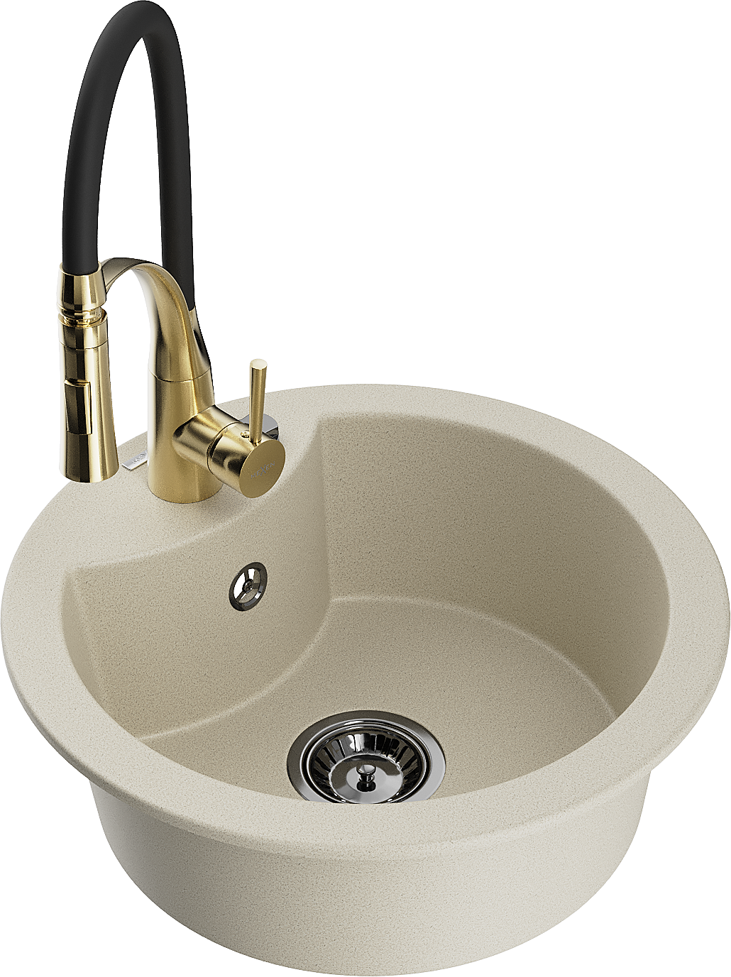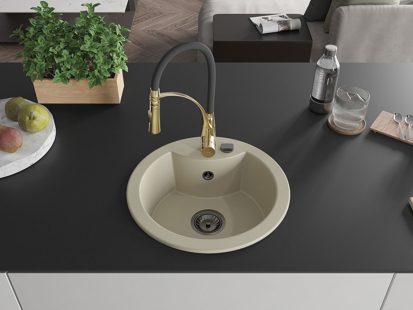 Mexen Diego lava-louça de granito de 1 câmara com torneira de cozinha Aster, bege - 6512-69-73450-57-B