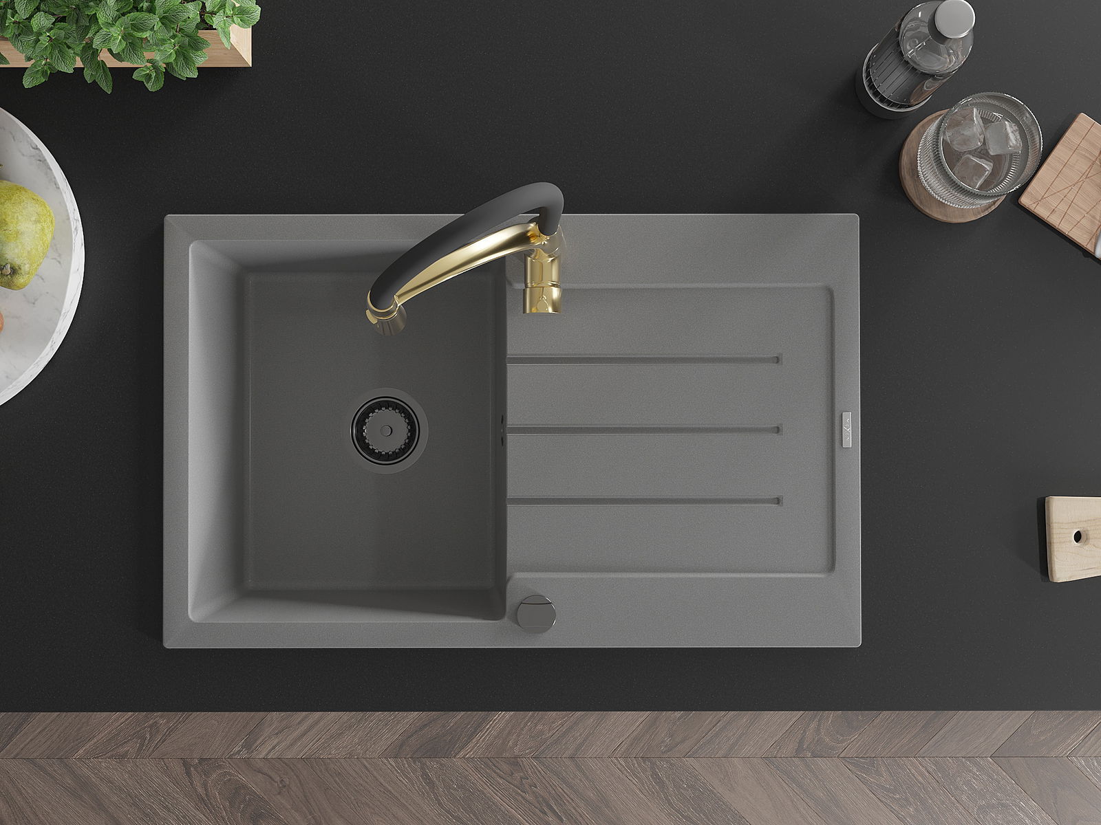 O lava-louças foi feito de granito de alta qualidade. É um complemento elegante e, acima de tudo, prático para qualquer cozinha, independentemente do seu estilo. A alta qualidade e durabilidade do granito garantem uma utilização de muitos anos.