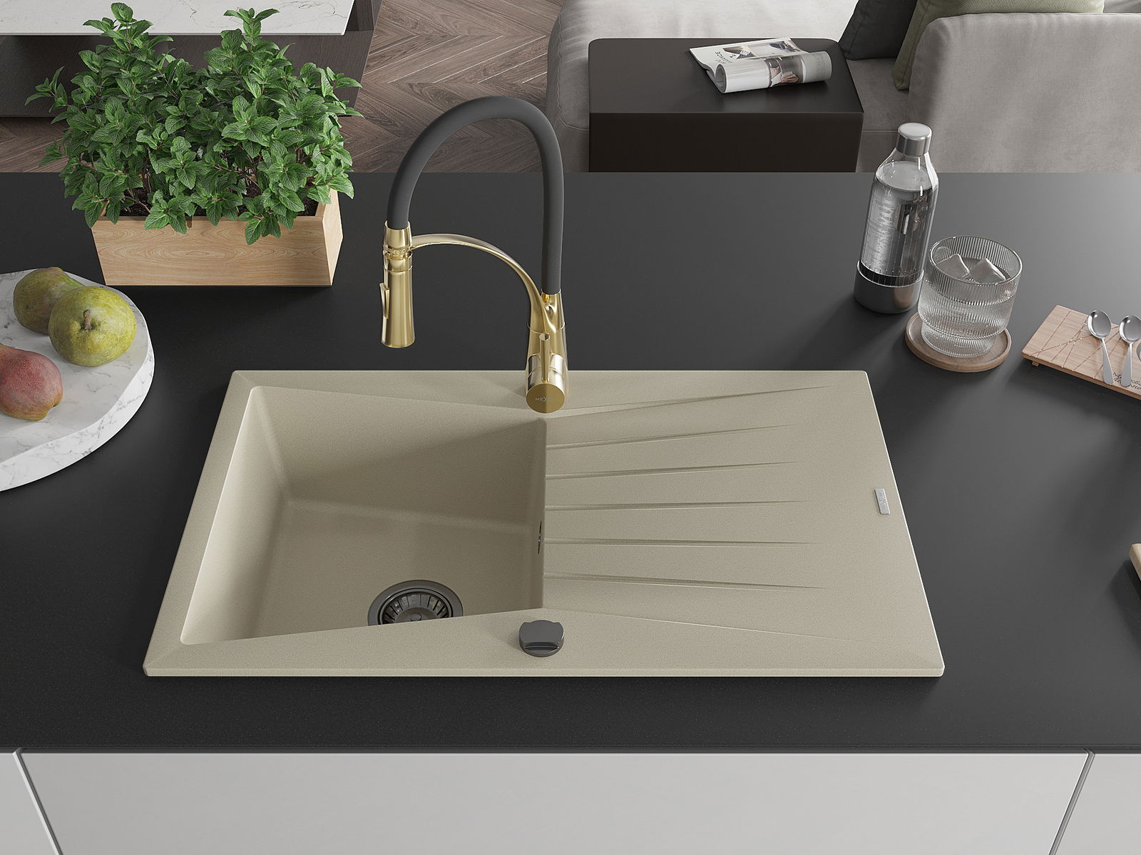 O lava-louças foi feito de granito de alta qualidade. É um complemento elegante e, acima de tudo, prático para qualquer cozinha, independentemente do seu estilo. A alta qualidade e durabilidade do granito garantem uma utilização de muitos anos.