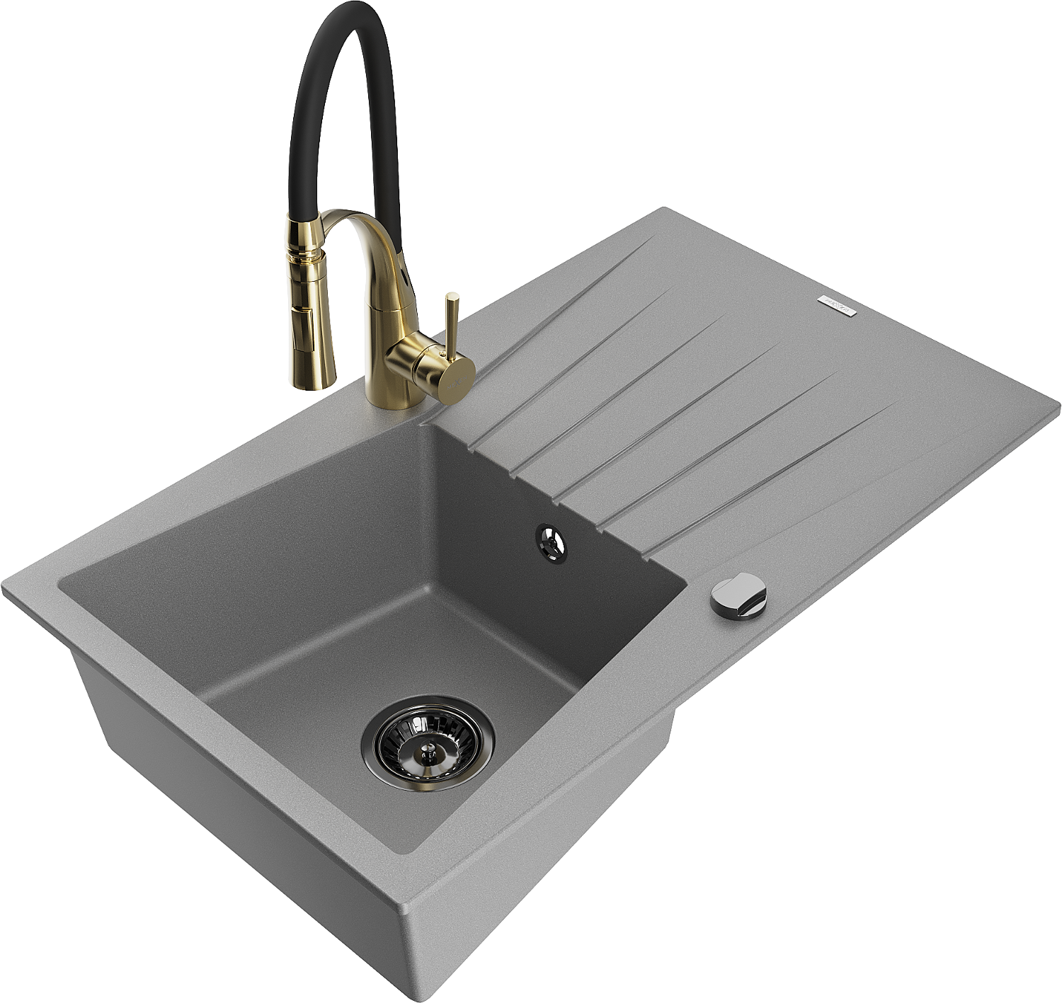 Mexen Cesar lava-loiça de granito com 1 bacia com escorredor e torneira de cozinha Aster, cinza - 6514-71-73450-57-B