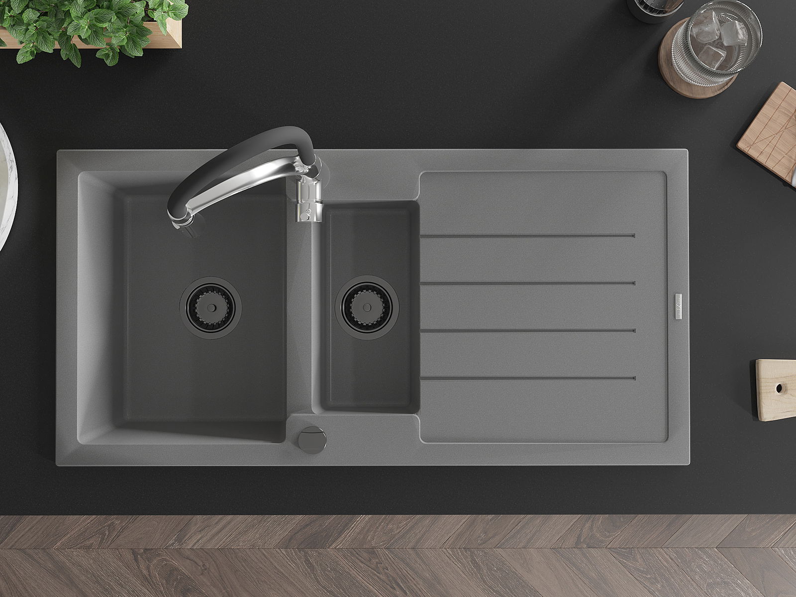 O lava-louças foi feito de granito de alta qualidade. É um complemento elegante e, acima de tudo, prático para qualquer cozinha, independentemente do seu estilo. A alta qualidade e durabilidade do granito garantem uma utilização de muitos anos.