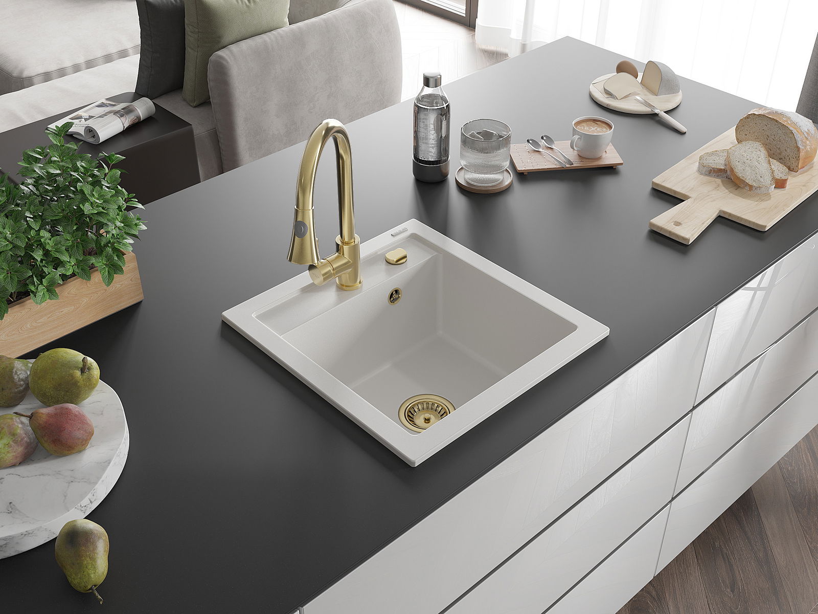 O lava-loiça é feito de granito de alta qualidade. Constitui um complemento elegante, e acima de tudo prático, para qualquer cozinha, independentemente do seu estilo. A alta qualidade e durabilidade do granito garantem muitos anos de utilização.