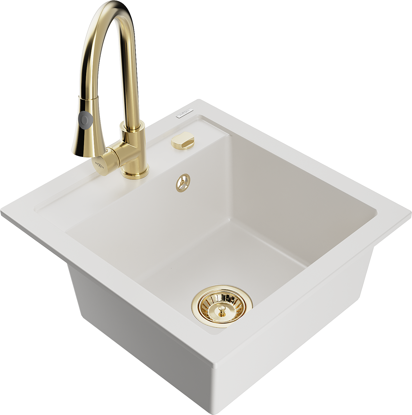 Mexen Vito lava-louça de granito de 1 bacia com torneira de cozinha Elia, branco - 6503-20-670101-50