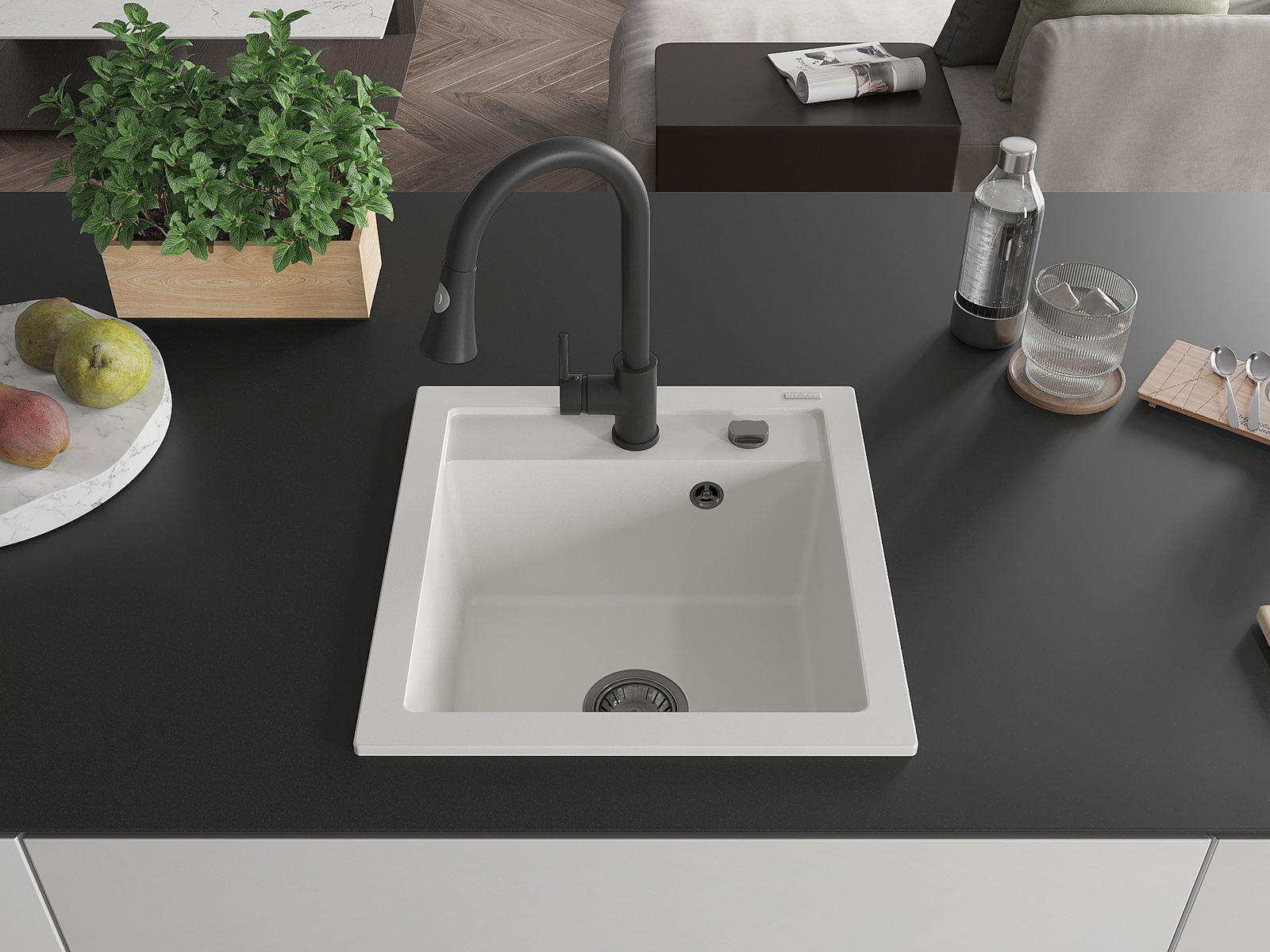 O lava-loiça é feito de granito de alta qualidade. Constitui um complemento elegante, e acima de tudo prático, para qualquer cozinha, independentemente do seu estilo. A alta qualidade e durabilidade do granito garantem muitos anos de utilização.