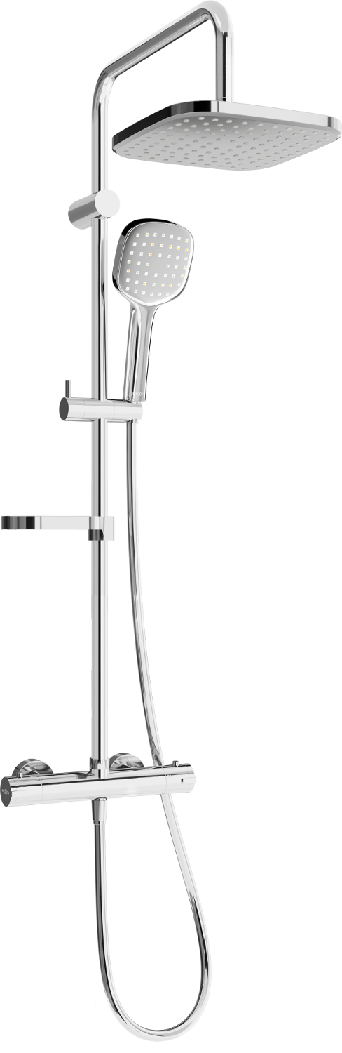O termóstato permite definir a temperatura da água, que manterá durante o banho. É uma solução inovadora, que não só oferece conforto, mas também evita alterações bruscas de temperatura e queimaduras desagradáveis.