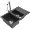 Mexen Gaspar lava-loiça de granito de 1,5 cubas com escorredor e torneira de cozinha Elia, cinza - 6507-71-670101-71