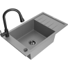 Mexen Elias lava-loiça de granito com 1 cuba com escorredor e torneira de cozinha Elia, preto/prateado metálico