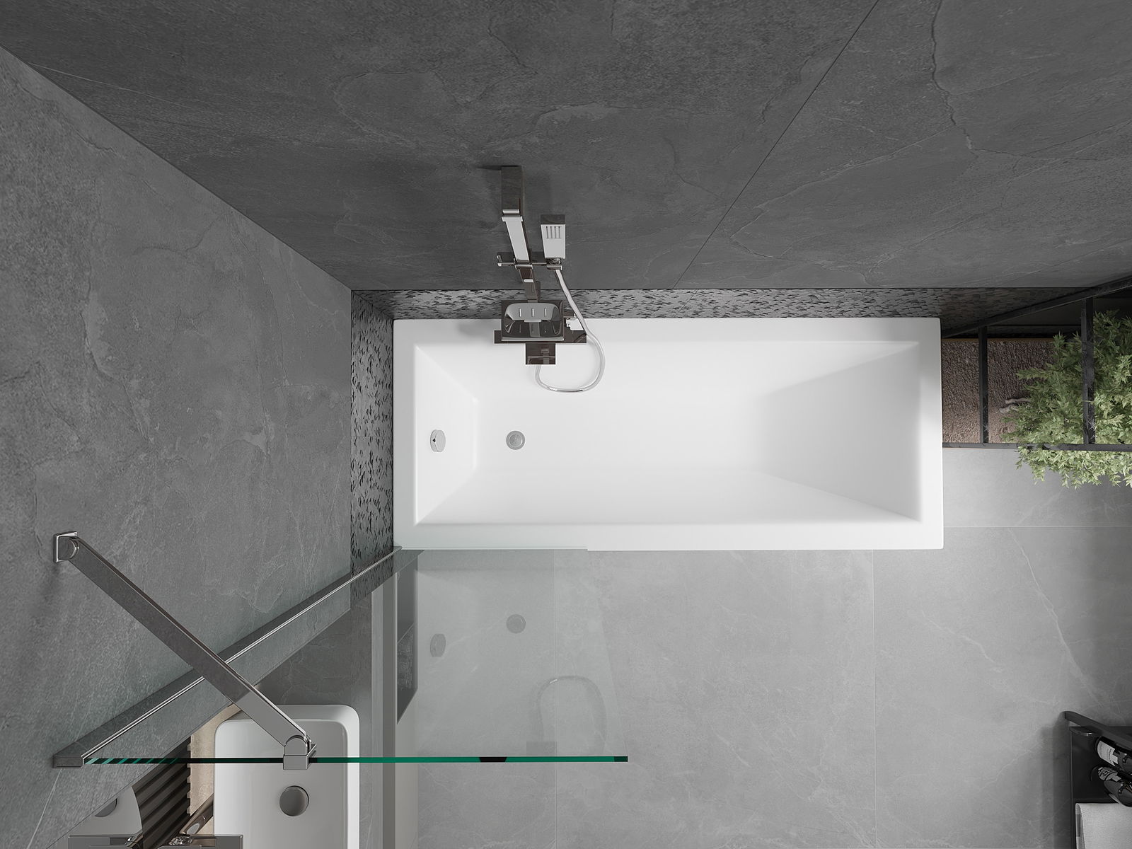 Proteção eficaz contra o derramamento de água durante o banho. O parapeito possui vedações que se ajustam perfeitamente à superfície do vidro e à borda da banheira. Solução funcional que garante segurança e fácil manutenção da limpeza.