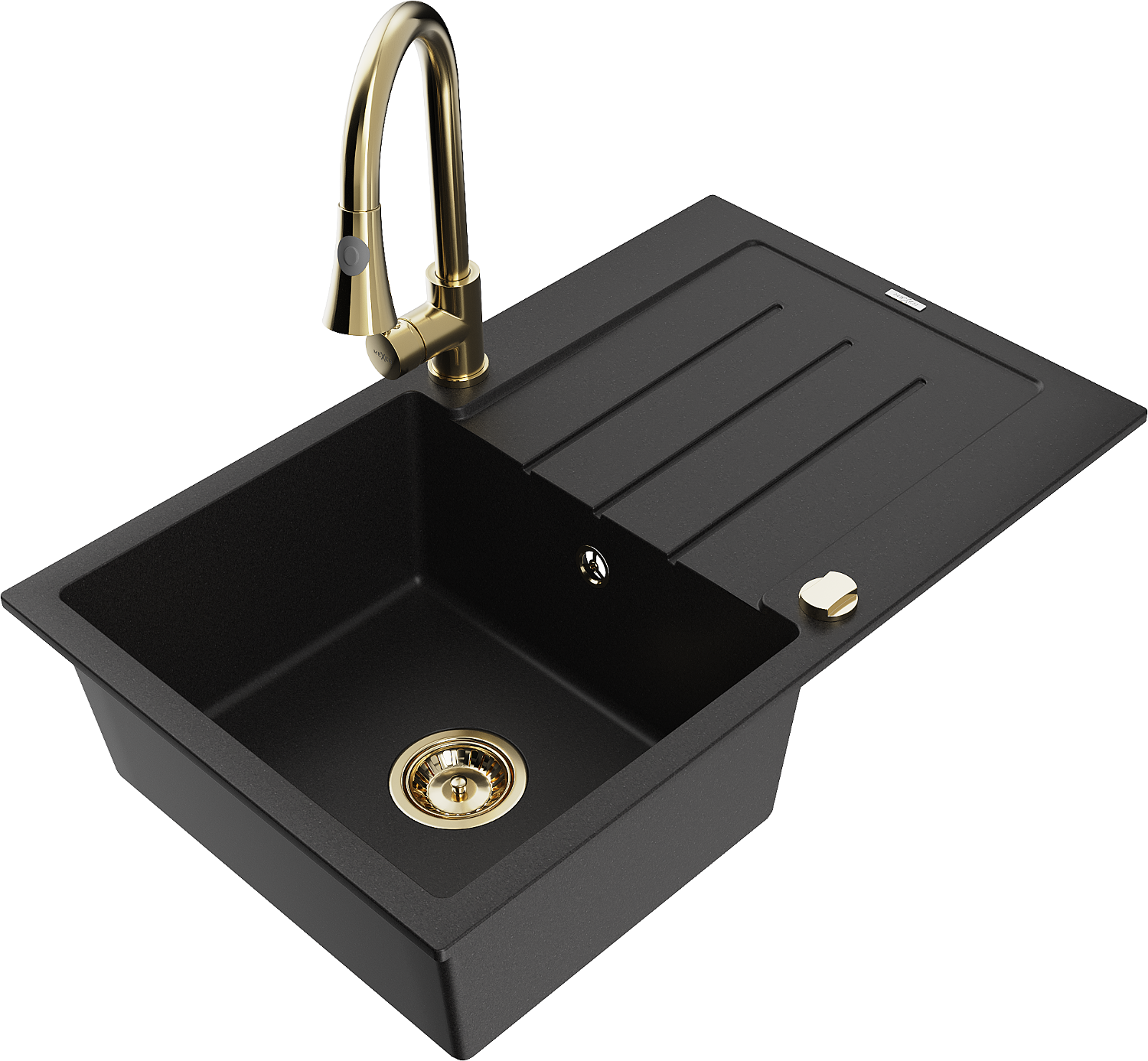 Mexen Bruno lava-louça em granito com 1 cuba com escorredor e misturadora de cozinha Elia, preto - 6513-77-670101-50