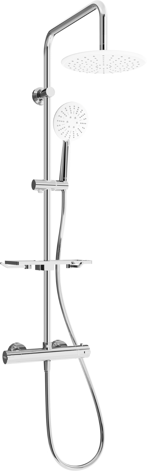 O termóstato permite definir a temperatura da água, que manterá durante o banho. É uma solução inovadora, que não só oferece conforto, mas também evita alterações bruscas de temperatura e queimaduras desagradáveis.