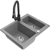 Mexen Carlos lava-loiça em granito 1,5 com compartimento com torneira de cozinha Elia, preto/prateado metálico