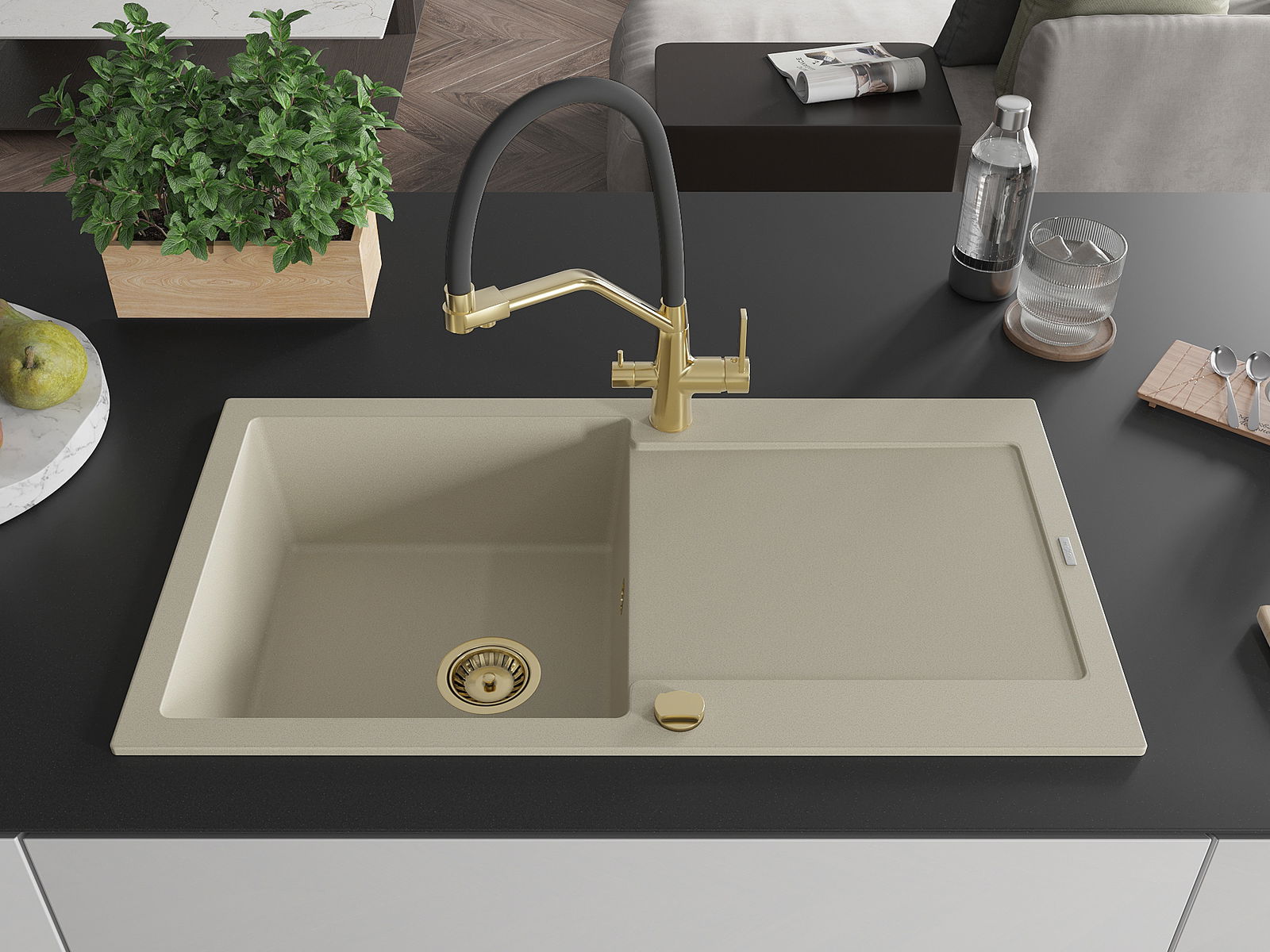 O lava-louças foi feito de granito de alta qualidade. É um complemento elegante e, acima de tudo, prático para qualquer cozinha, independentemente do seu estilo. A alta qualidade e durabilidade do granito garantem uma utilização de muitos anos.