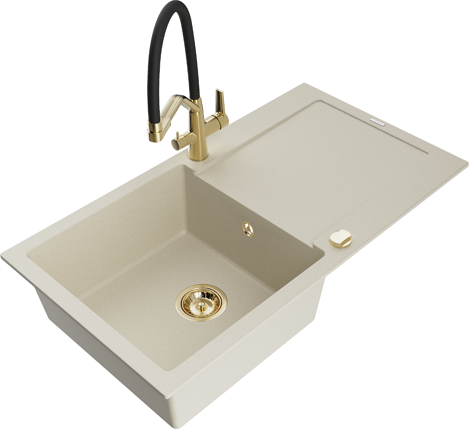 Mexen Leo lava-loiça de granito com 1 bacia com escorredor e torneira de cozinha Duo, bege - 6501-69-671701-57-G