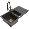 Mexen Matias lava-louça de granito 1,5 bacia com escorredor e torneira de cozinha Duo, cinza - 6502-71-671701-57-G