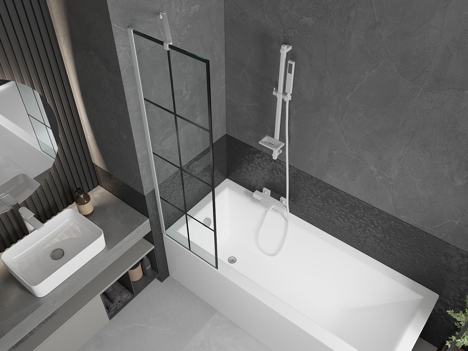 Mexen Next divisória de banho de 1 folha 50 x 150 cm, malha preta, branco - 895-050-000-00-77-20
