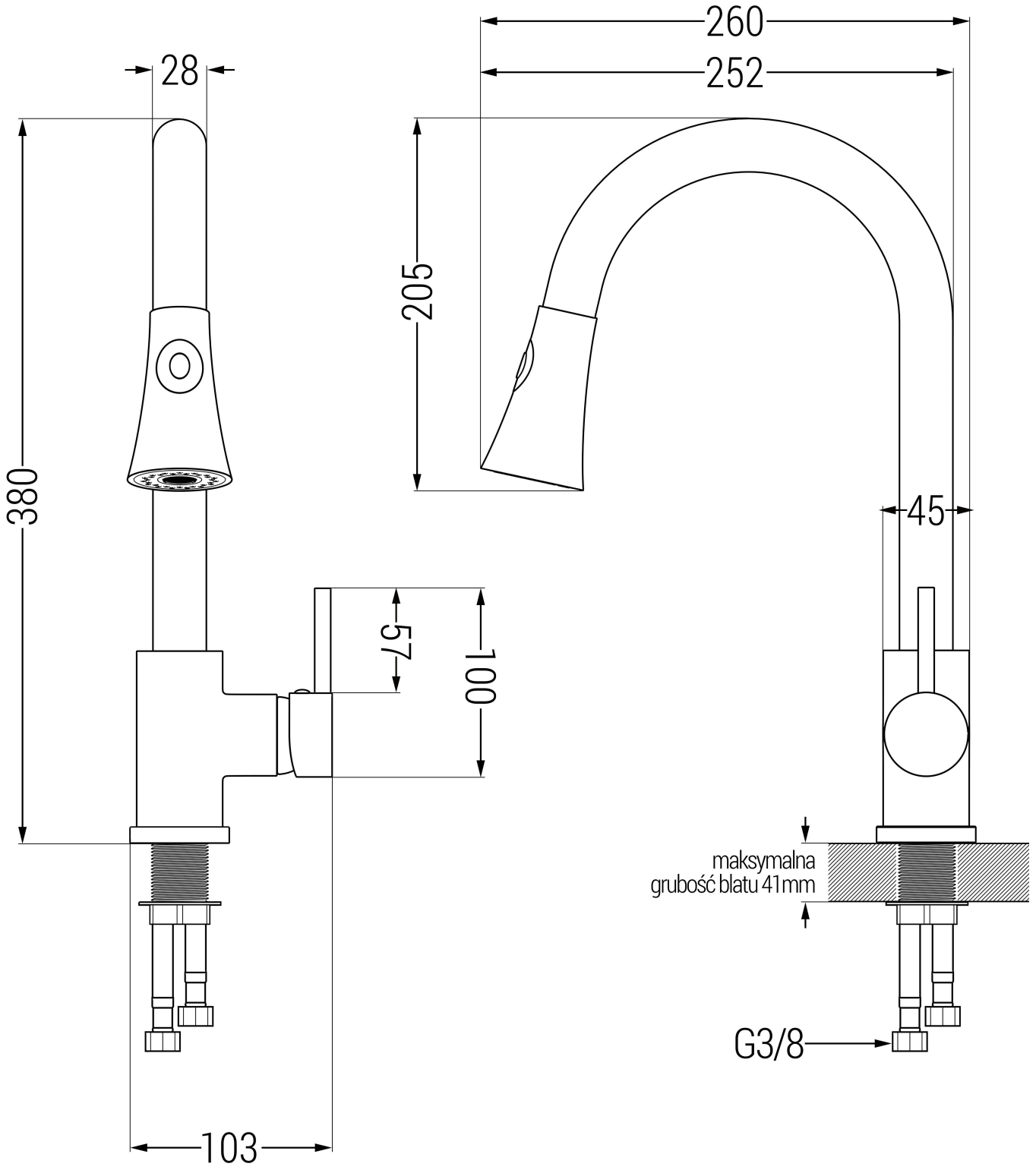 A torneira possui 2 modos de funcionamento: normal e chuveiro. O jato de água pode ser alterado livremente e ajustado para atender às necessidades individuais. Desta forma, lavar a louça torna-se ainda mais fácil, conveniente e eficaz.