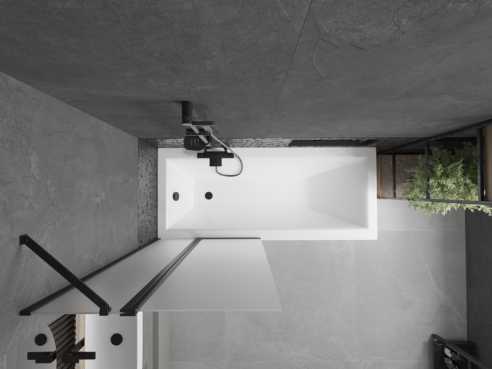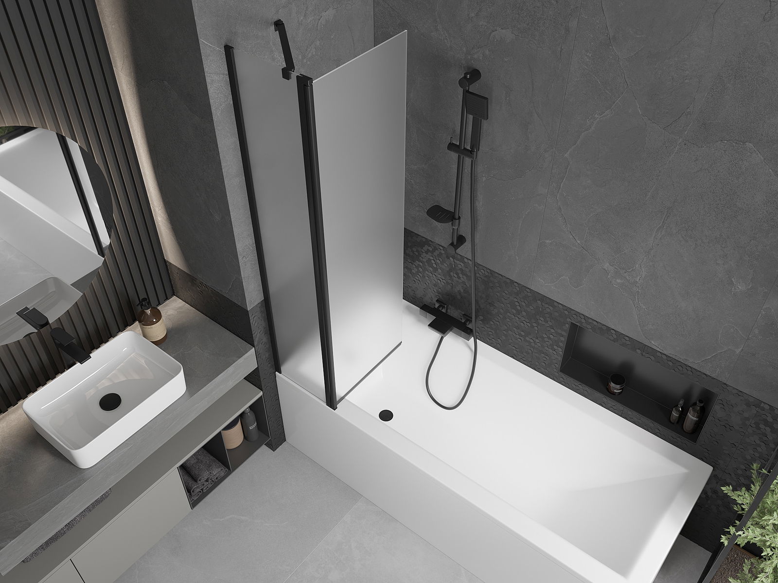 Proteção eficaz contra o derramamento de água durante o banho. O parapeito possui vedações que se ajustam perfeitamente à superfície do vidro e à borda da banheira. Solução funcional que garante segurança e fácil manutenção da limpeza.