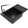 Mexen Elias lava-loiça de granito de 1 cuba com escorredor e torneira de cozinha Flora, cinzento - 6511-71-670401-07-B