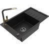 Mexen Elias lava-loiça de granito com 1 cuba, com escorredor e torneira de cozinha Flora, preto salpicado - 6511-76-670401-75-B