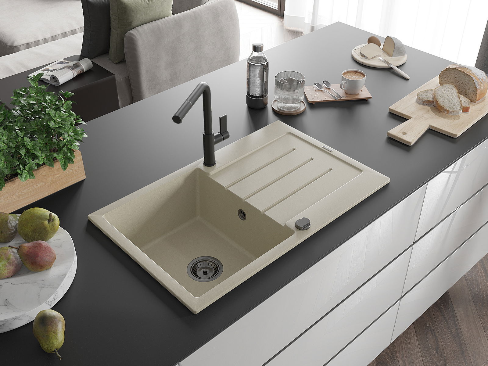 O lava-louças foi feito de granito de alta qualidade. É um complemento elegante e, acima de tudo, prático para qualquer cozinha, independentemente do seu estilo. A alta qualidade e durabilidade do granito garantem uma utilização de muitos anos.