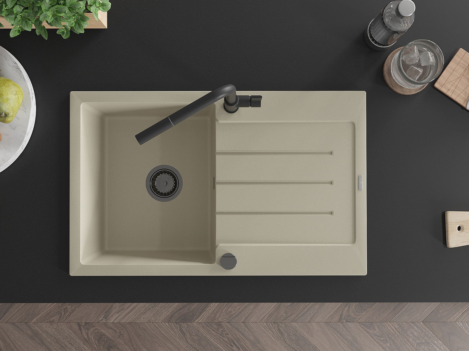 Mexen Bruno lava-louça em granito de 1-bacia com escorredor e torneira de cozinha Flora, bege - 6513-69-670401-70-B