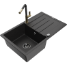 Mexen Bruno lava-louça de granito 1-cuba com escorredor e torneira de cozinha Flora, preto salpicado - 6513-76-670401-75-B